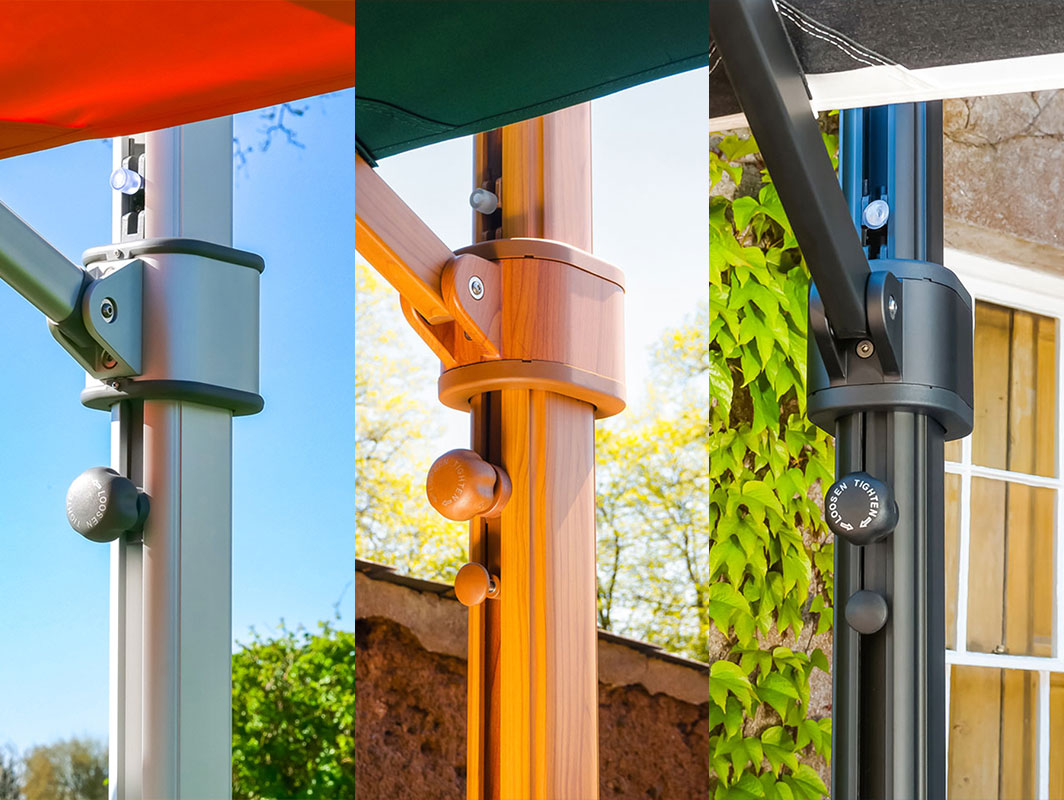 Their premium garden parasols are constructed from marine-grade aluminium frames paired with UV-resistant, solution-dyed acrylic canopies.