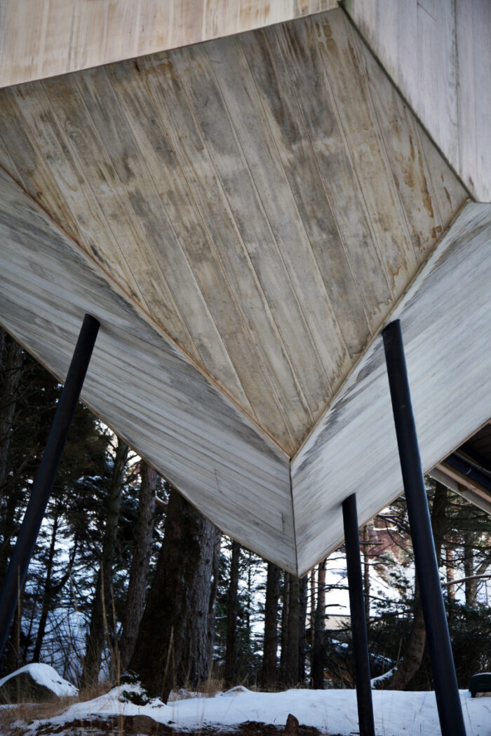 The team selected a specially treated pine-based product called Accoya, that is both highly stable and rot-resistant, and quickly weathered from cedar brown to pale silver-grey.